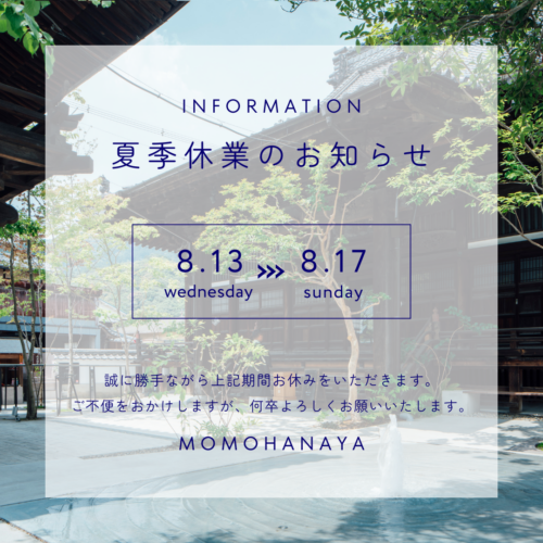 8/13(水)~8/17(日)の期間お休みさせていただきます。