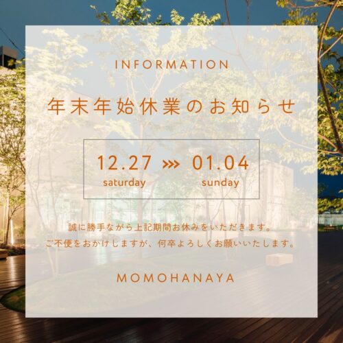 12/27(土)~1/4(日)の期間お休みさせていただきます。