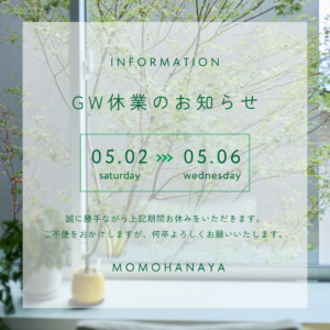 5月2日(土)~5月6日(水)の期間お休みさせていただきます。